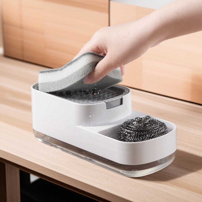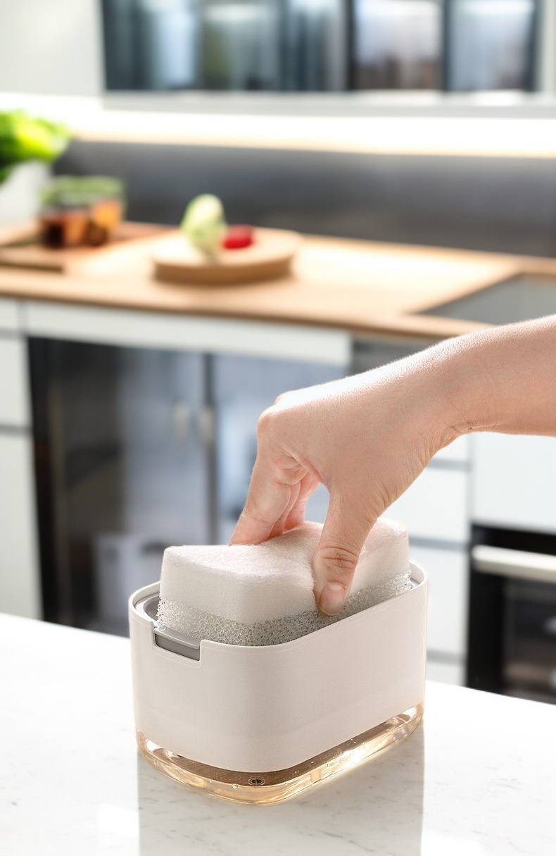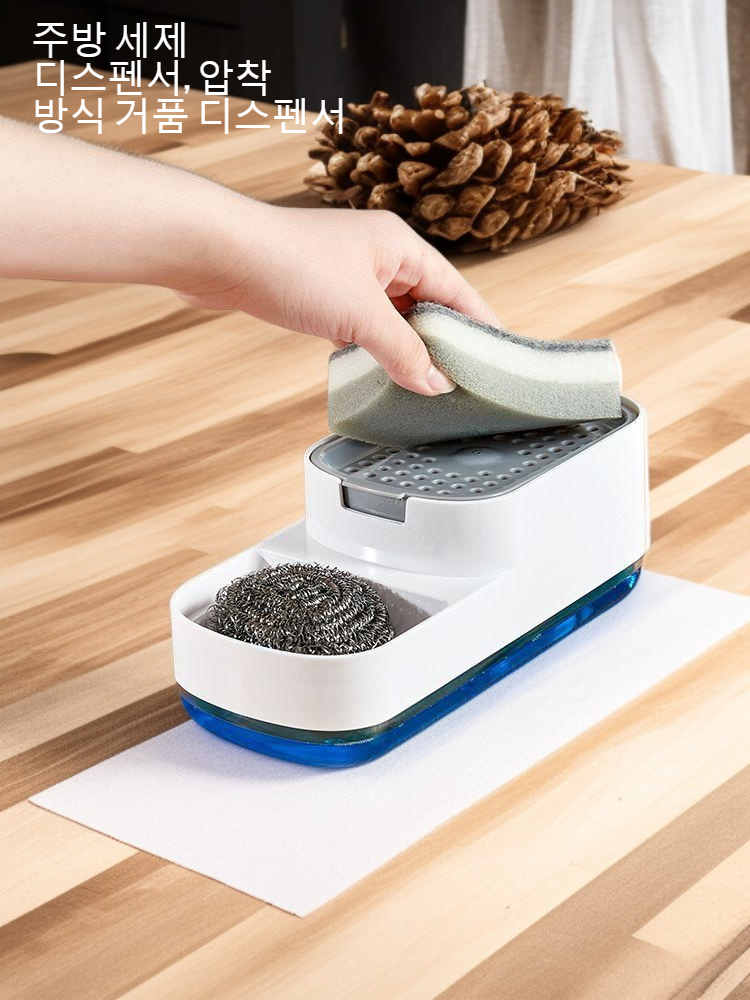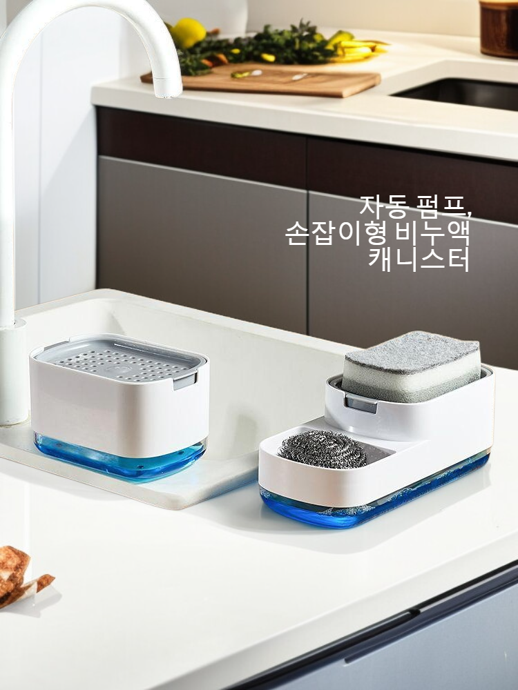 누름식 디자인으로 편리하게 사용 가능, 액체 세정제 절약, 위생적인 배출, 설치 간편, 주방 공간 효율적 활용, 다양한 세정제 호환, 내구성 우수